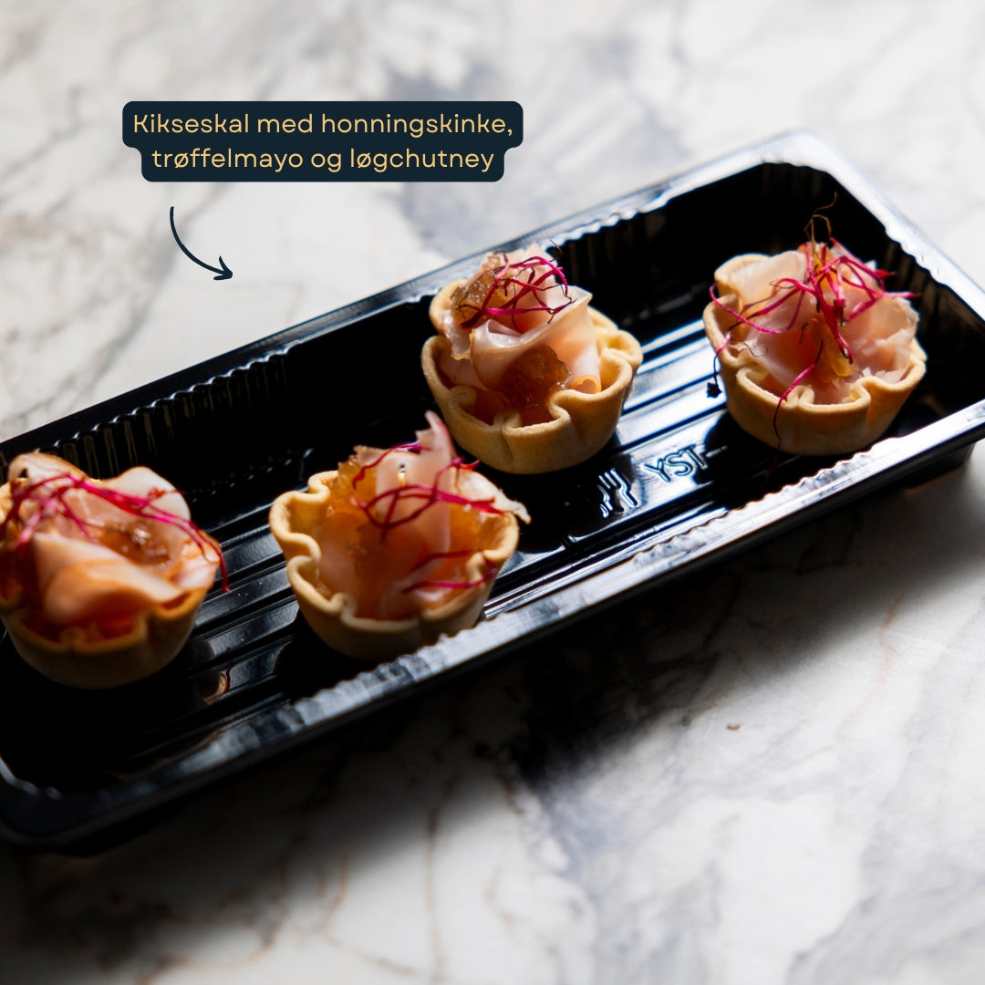- Kikseskal med honningskinke, trøffelmayo og løgchutney
