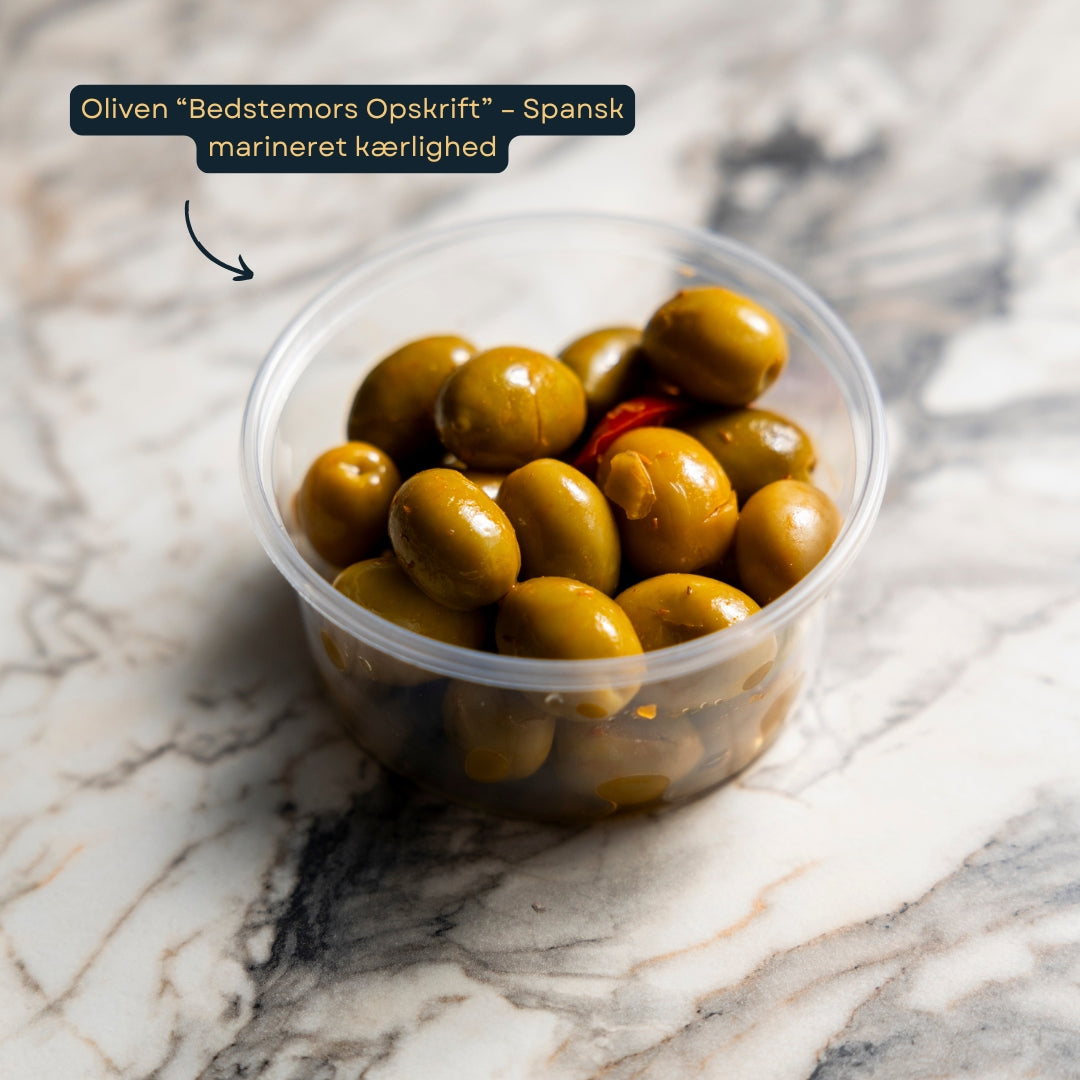 Oliven “Bedstemors Opskrift” – Spansk marineret kærlighed på glas
